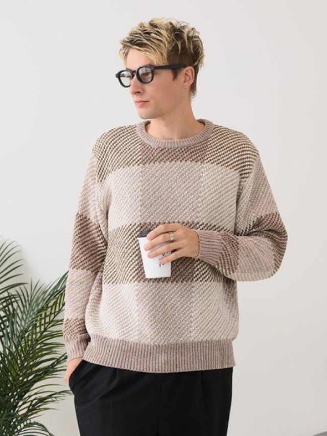 JE26👖[BLUE STANDARD] 鼴鼠格紋針織毛衣