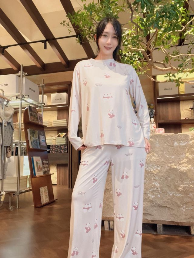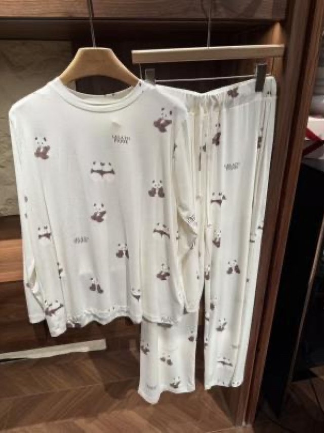 PL4💖1957兩只熊貓長袖長褲白色