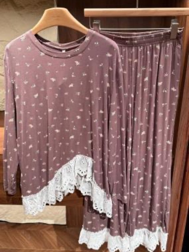 PL8💖 1922韓系蕾絲拼接碎花咖色 長袖長褲
