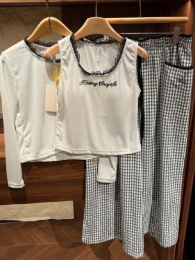 PL10💖 1919維希格紋三件套白色