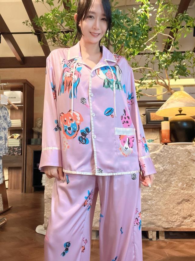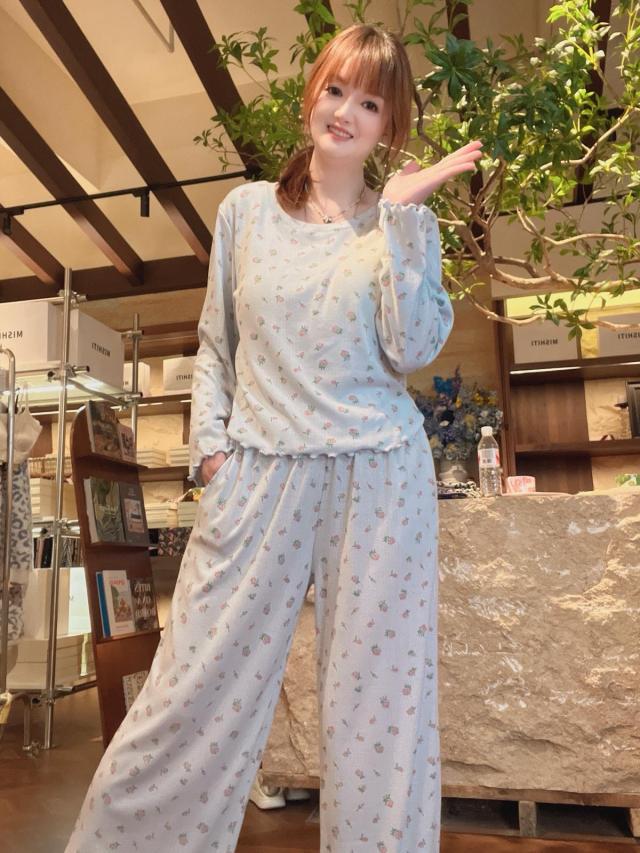 PL11💖 1916圓領印花長袖長褲開衫款 灰粉色
