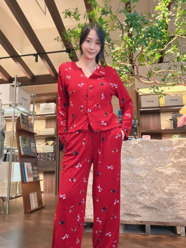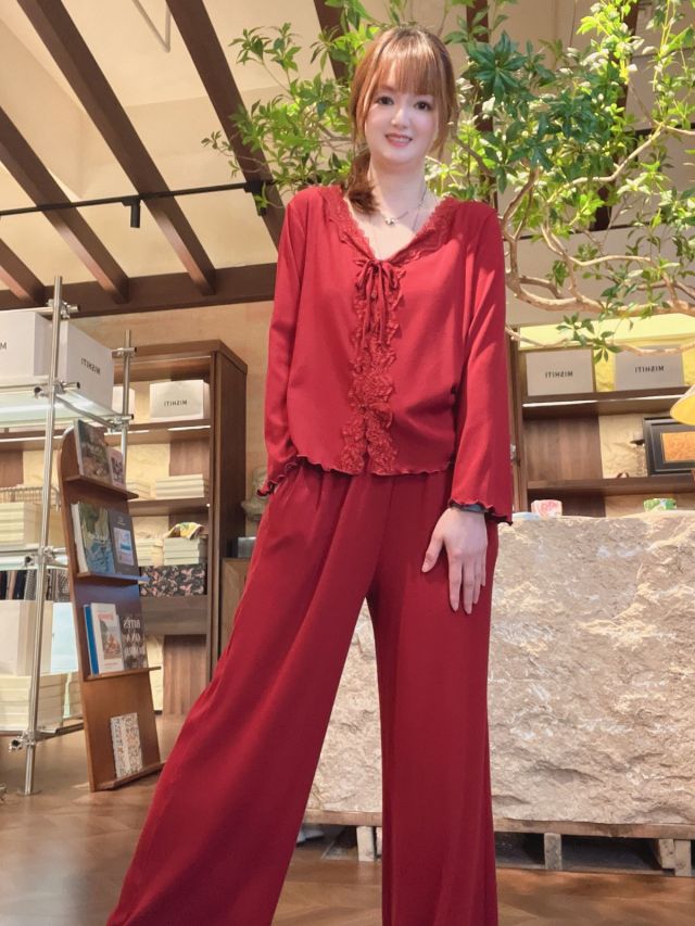 PL18💖1843紅色蕾絲木耳邊長袖長褲