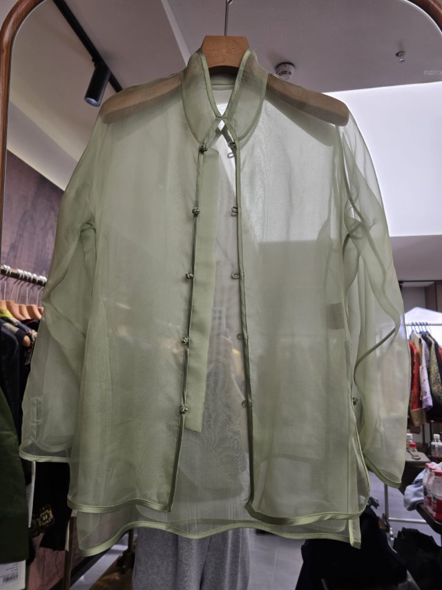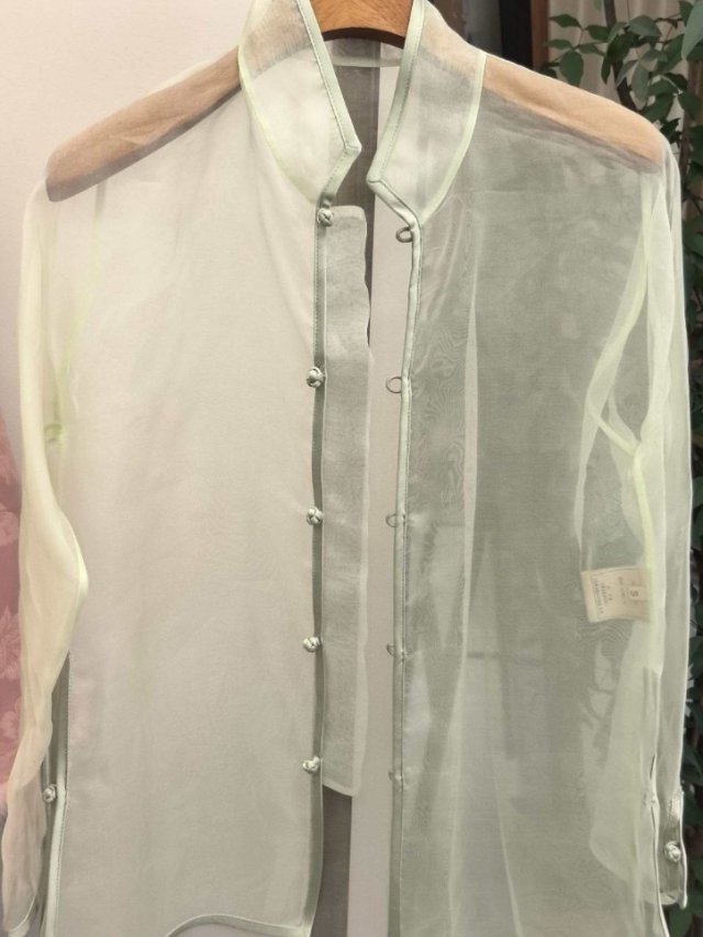 CN53 真絲歐根紗上衣豆綠