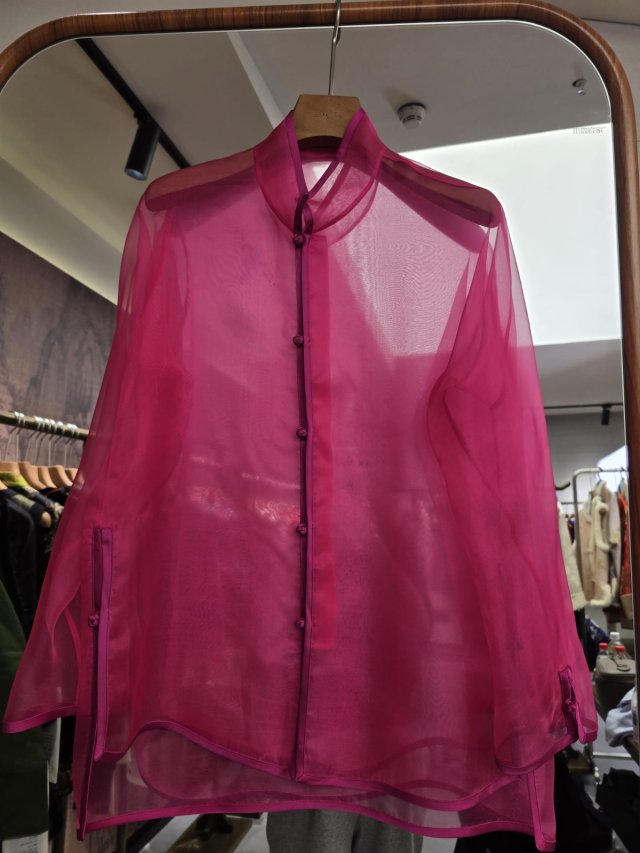 CN57 真絲歐根紗上衣玫紅