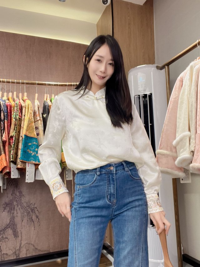 CN44 素影花缎提花上衣