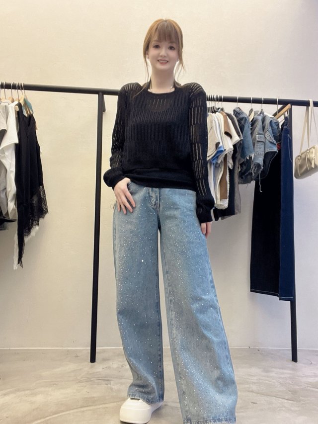 MM3 閃耀燙鑽修身直筒丹寧褲