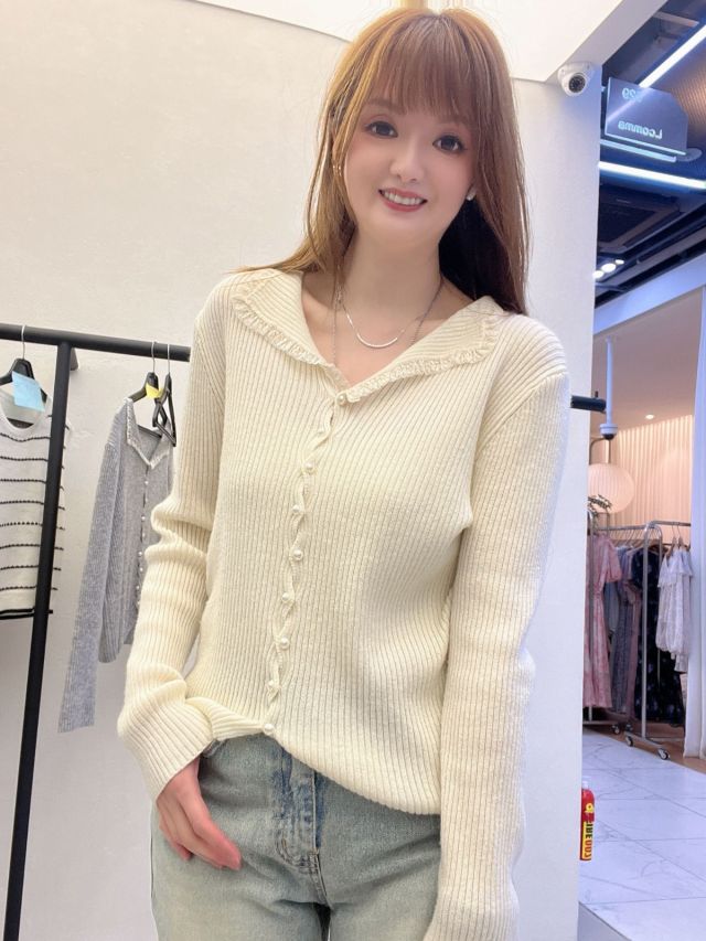 BA11💃🏻 蕾絲花邊珍珠扣針織衫