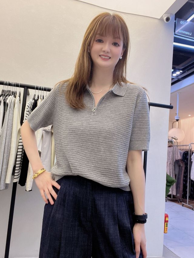 BA12💃🏻 金屬拉鍊領鏤空針織 Polo