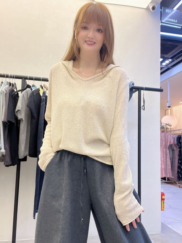 BA22💃🏻大 V 領薄針織連帽上衣