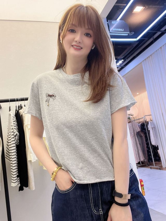 BA18 💃🏻亮片蝴蝶結印花圓領衫