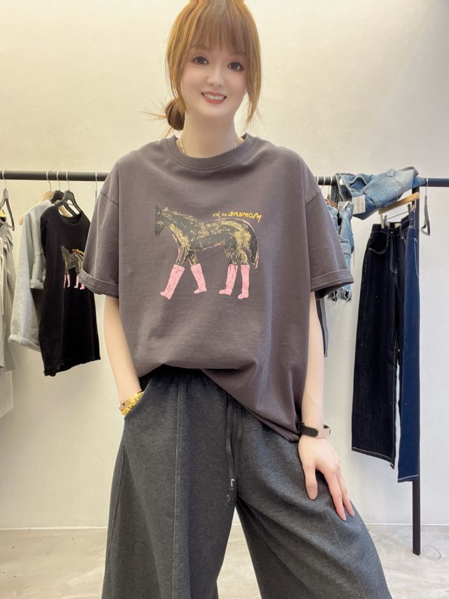 BA23💃🏻穿長靴的馬兒手繪風上衣