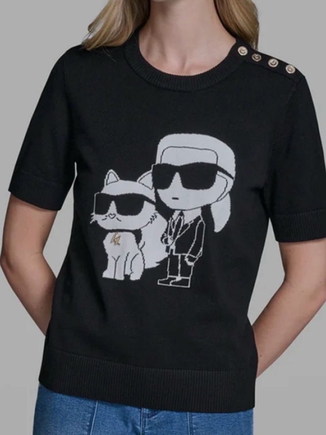 LL58 Karl Lagerfeld 女裝公仔針織上衣 (黑) KL2