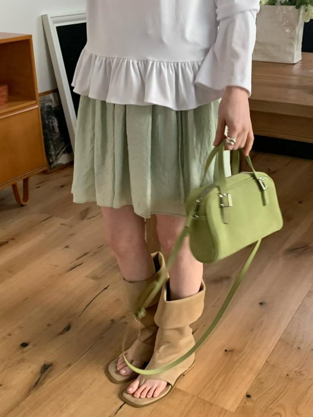 LE2 開心果綠真皮牛皮手提包