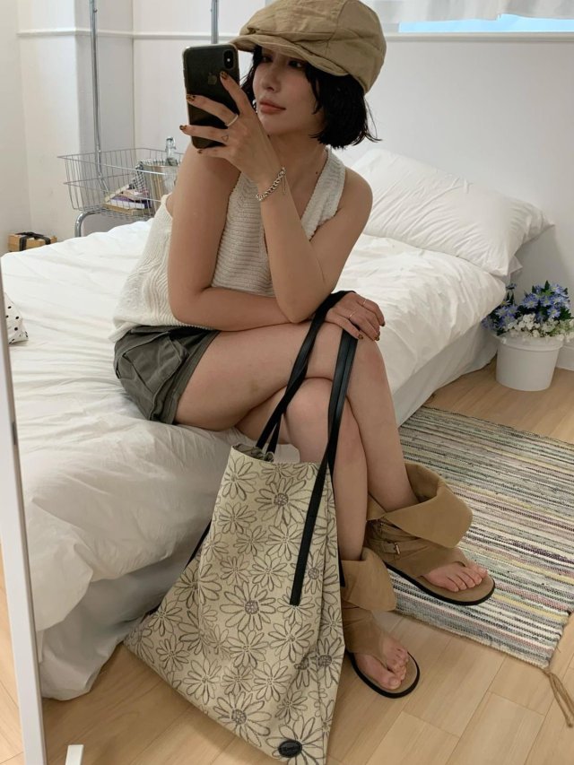 JE1 黑線雛菊刺繡大容量袋