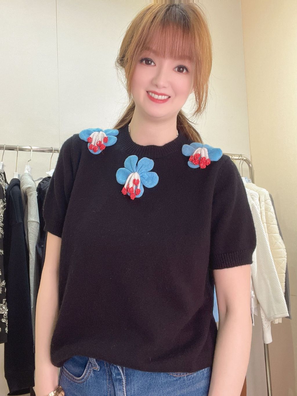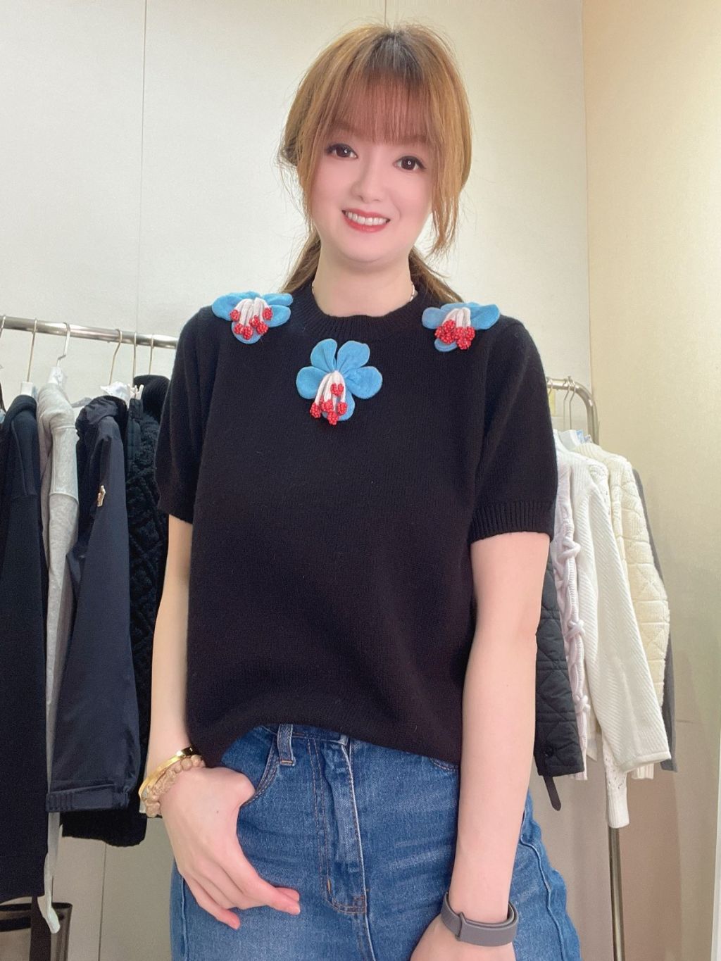 CT20👚黑色三朵花花上衣