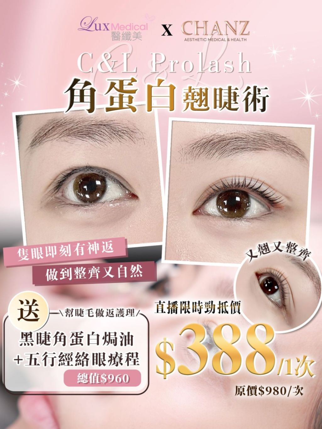 • 自然捲翹,效果持久:療程後睫毛即時呈現理想弧度,捲翹度維持長達6-8週。