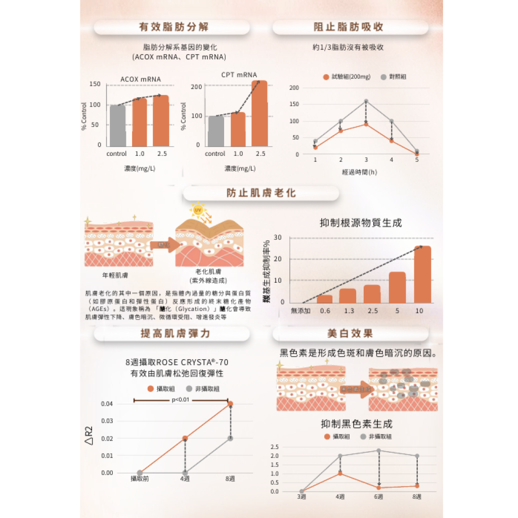 •⁠ ⁠抑制肌膚光老化及黑色素生成