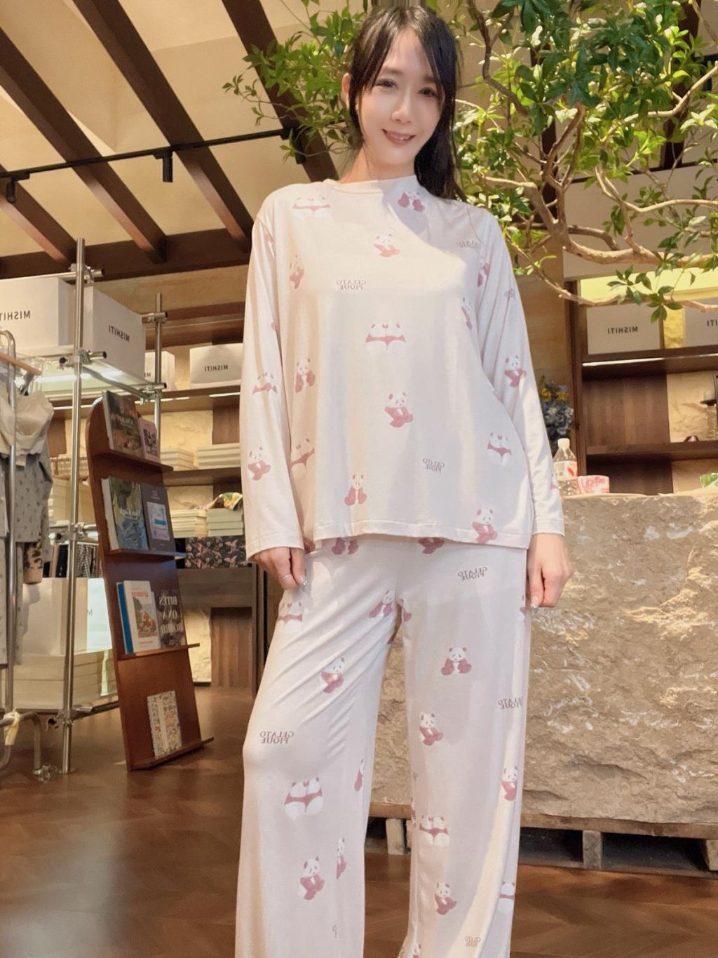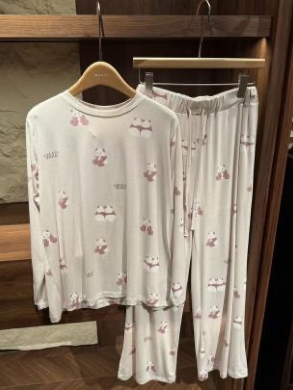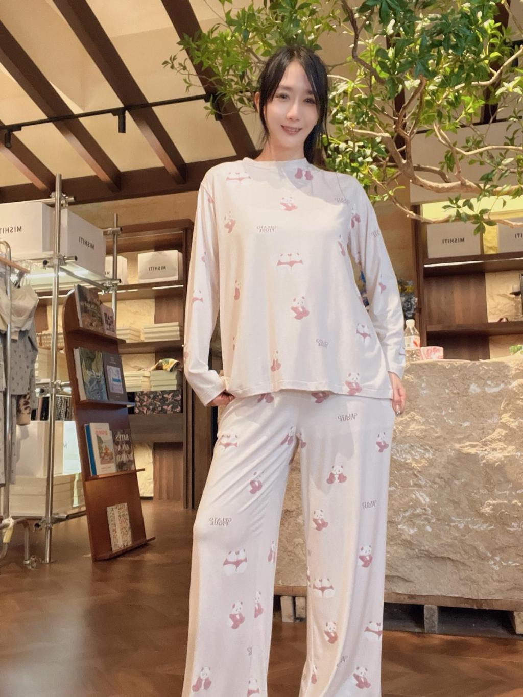 PL5💖1956兩只熊貓長袖長褲粉色