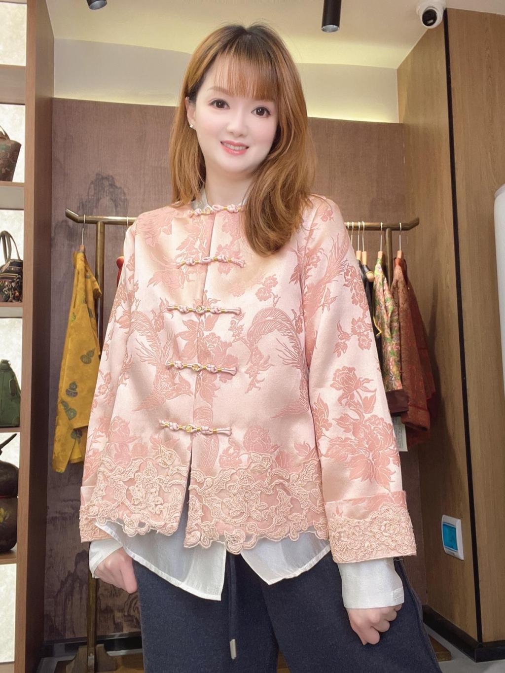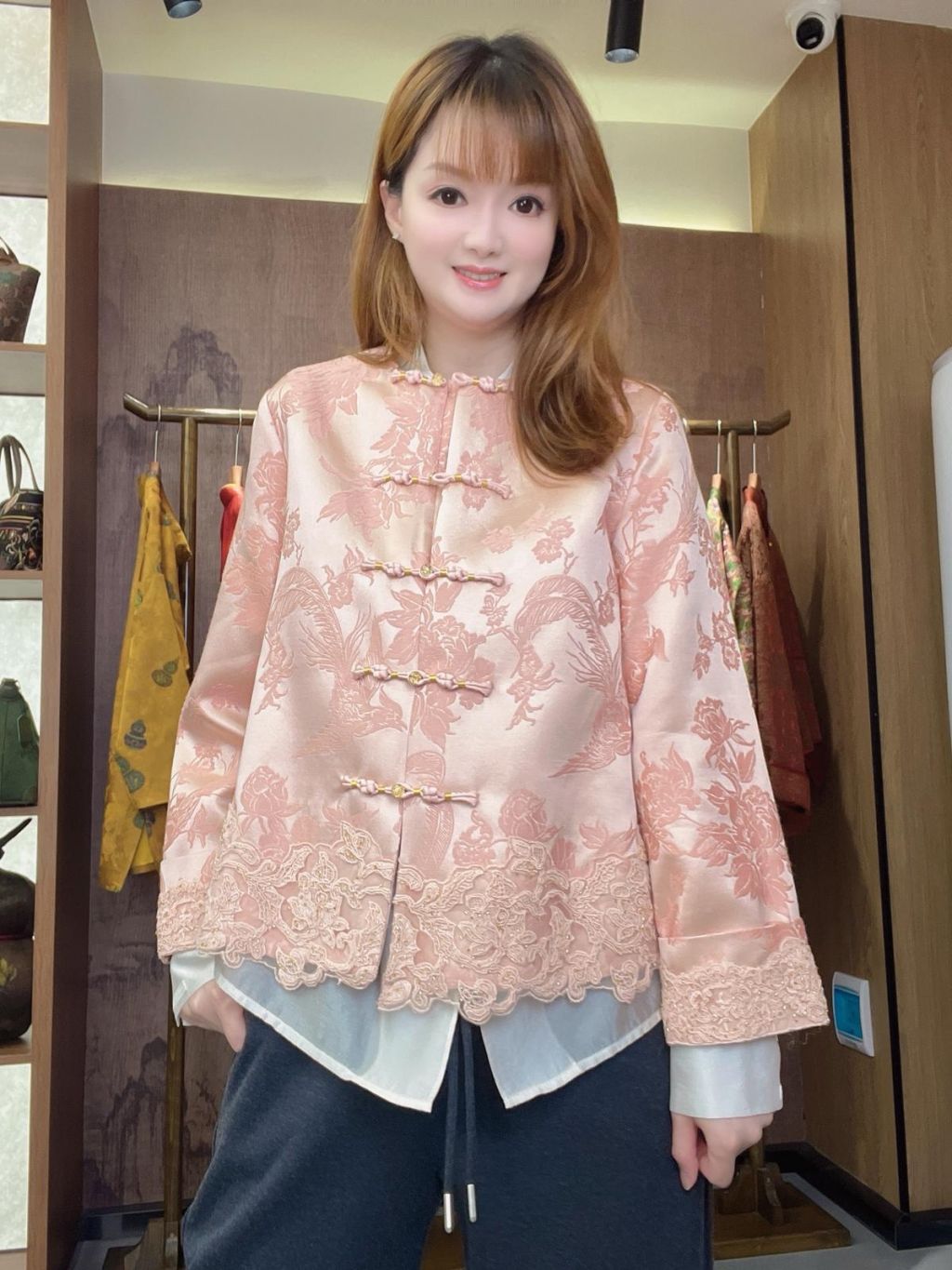 CN22 真絲絲毛刺繡手工釘珠外套粉色