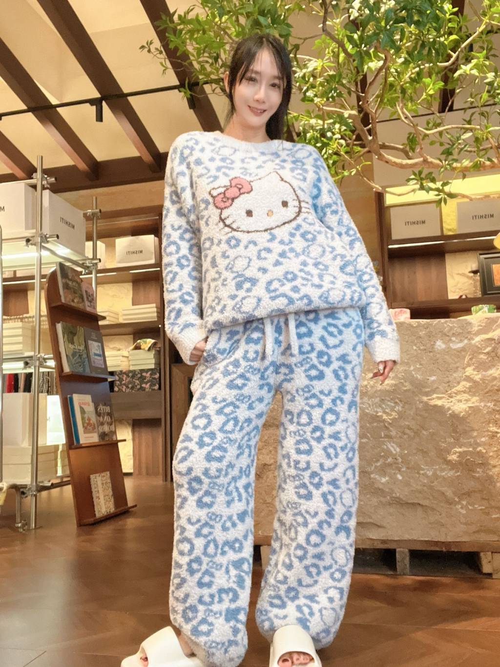 PL88💖1567豹紋貓KT圓領天藍