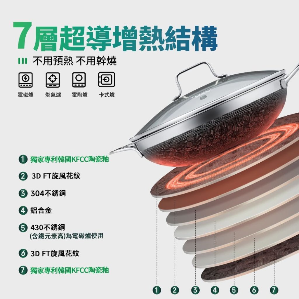 無論是電磁爐、電陶爐還是明⽕爐,都能完美適配,煮炒無限制;