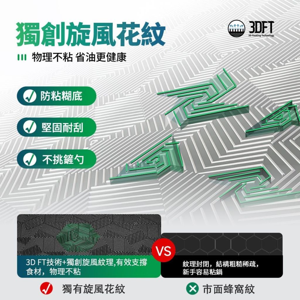 特殊紋理設計防⽌⾷材黏鍋,煮熱⽜奶,或⼀⼈前⼩份量⾷材時,不易
