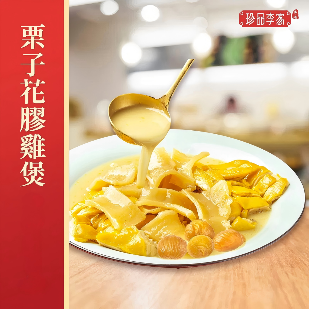 材料:深海花膠、走地玉米雞、濃湯、栗子