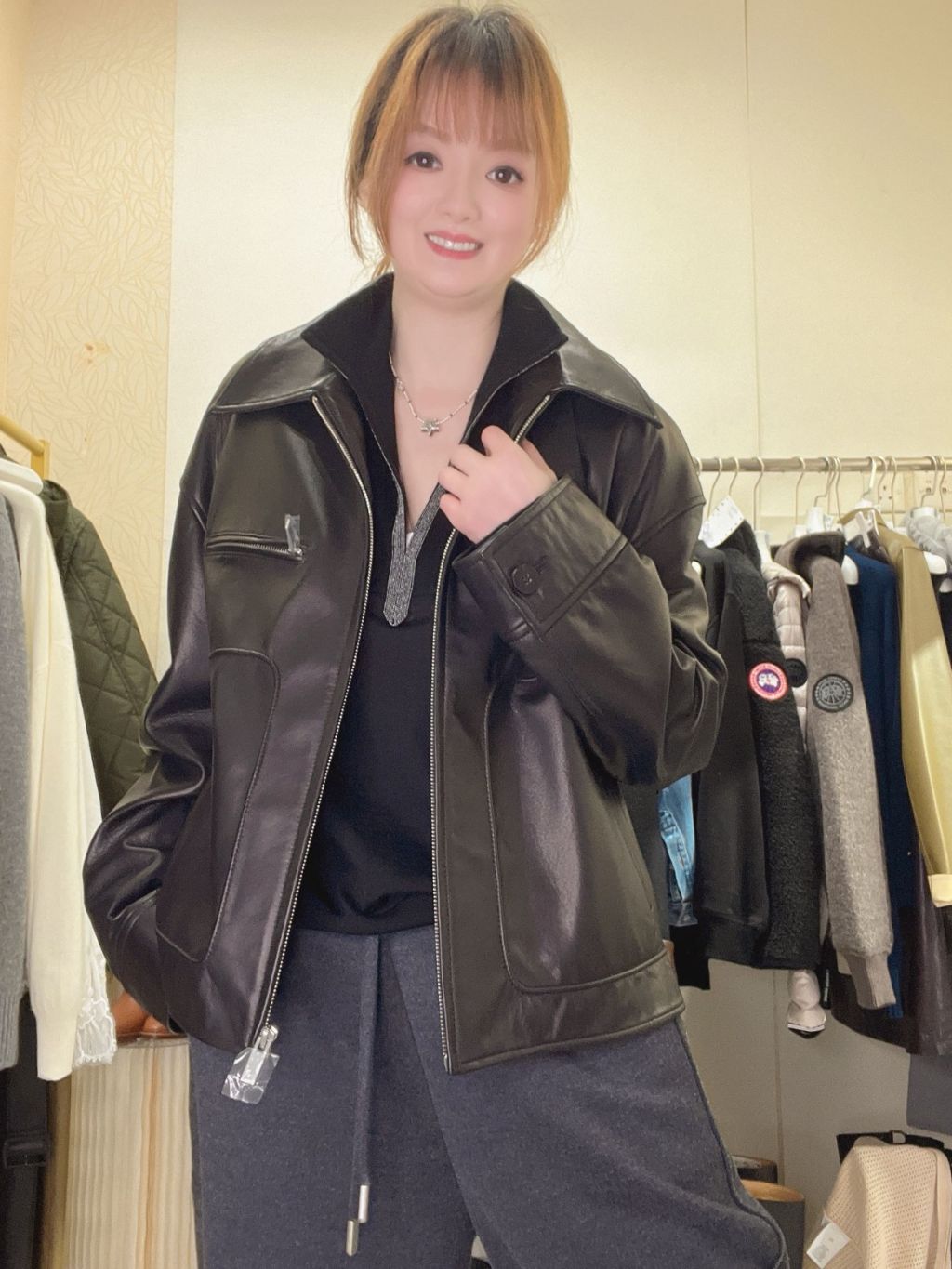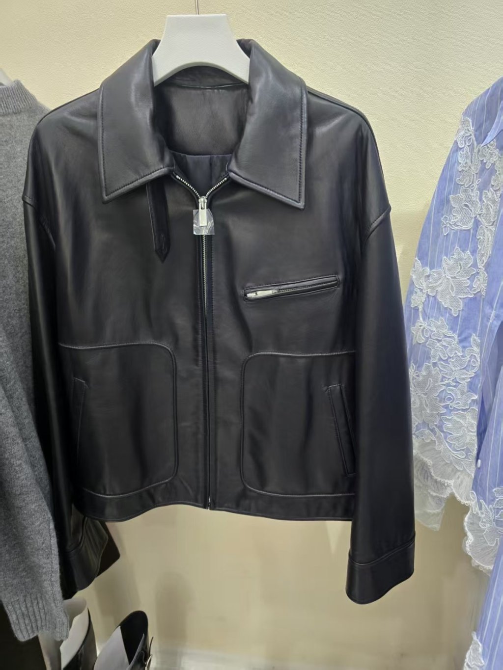 CS26 黑色皮褸心口有拉鏈