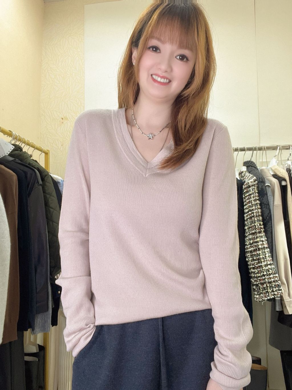 CS34 淺粉紅色V領上衫