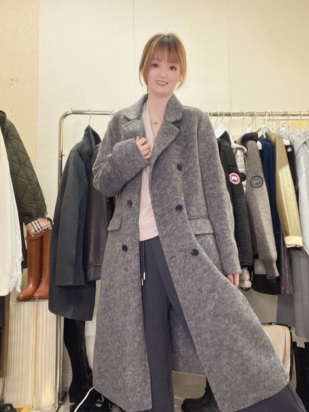 主頁 CS46 灰色双襟長褸