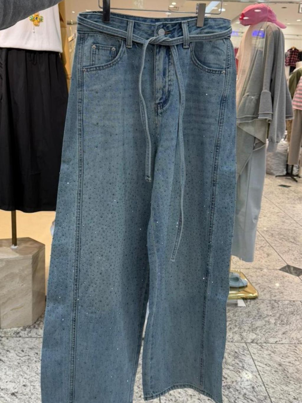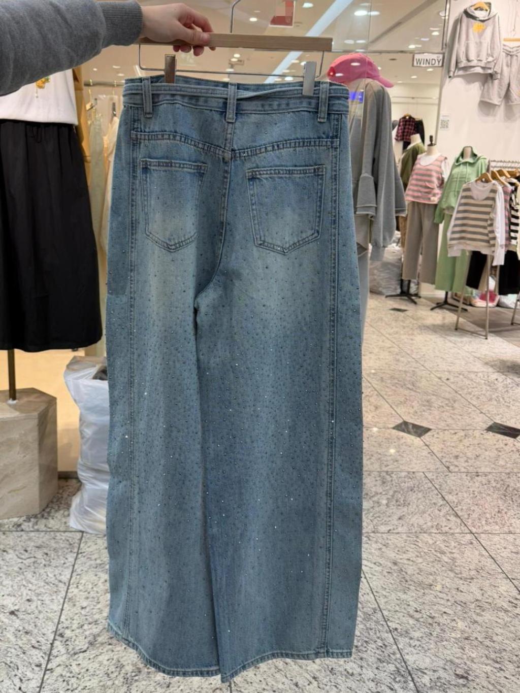 主頁 CE3 滿版點綴燙鑽丹寧寬褲