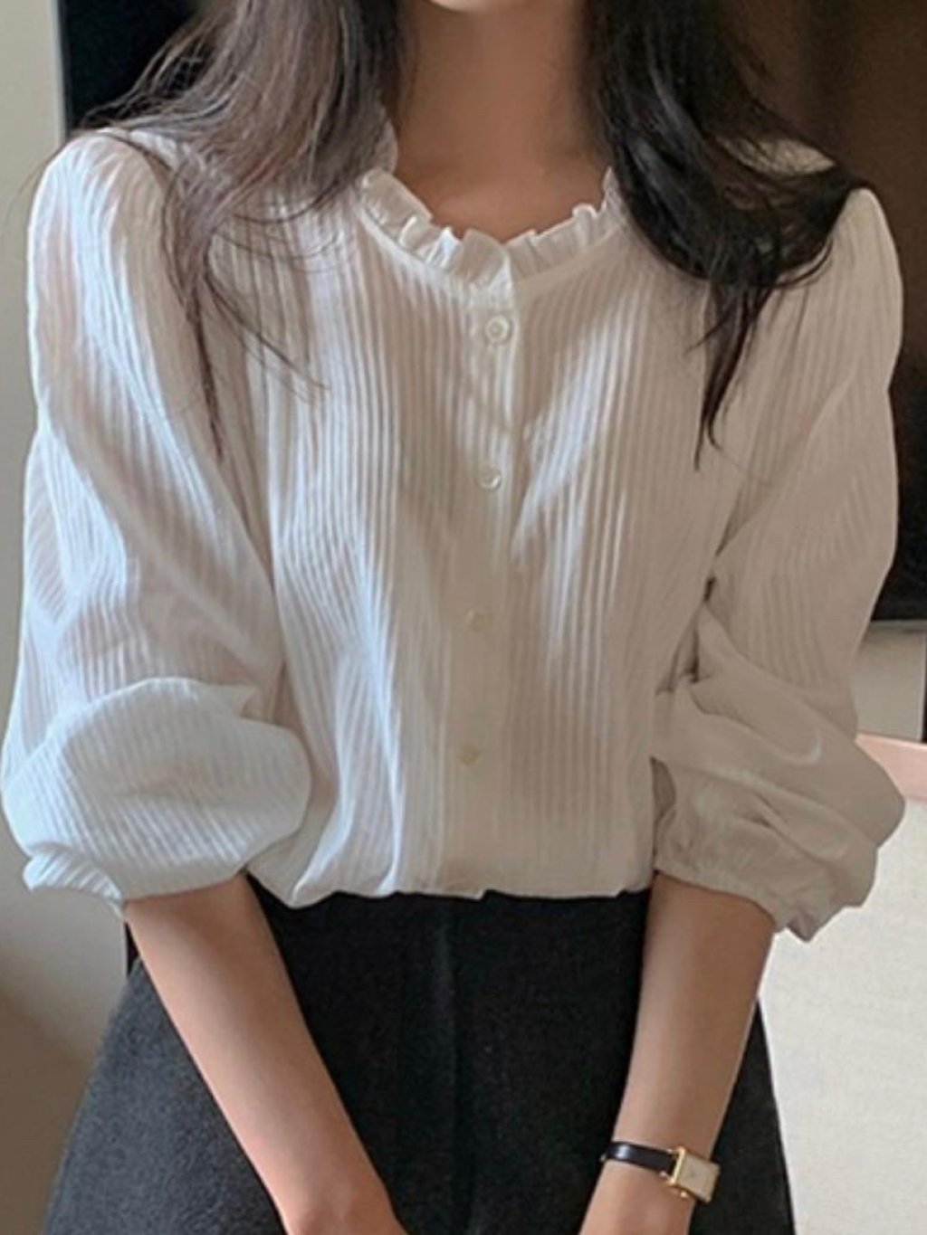 主頁 KF9 韓系荷葉壓褶排扣襯衫
