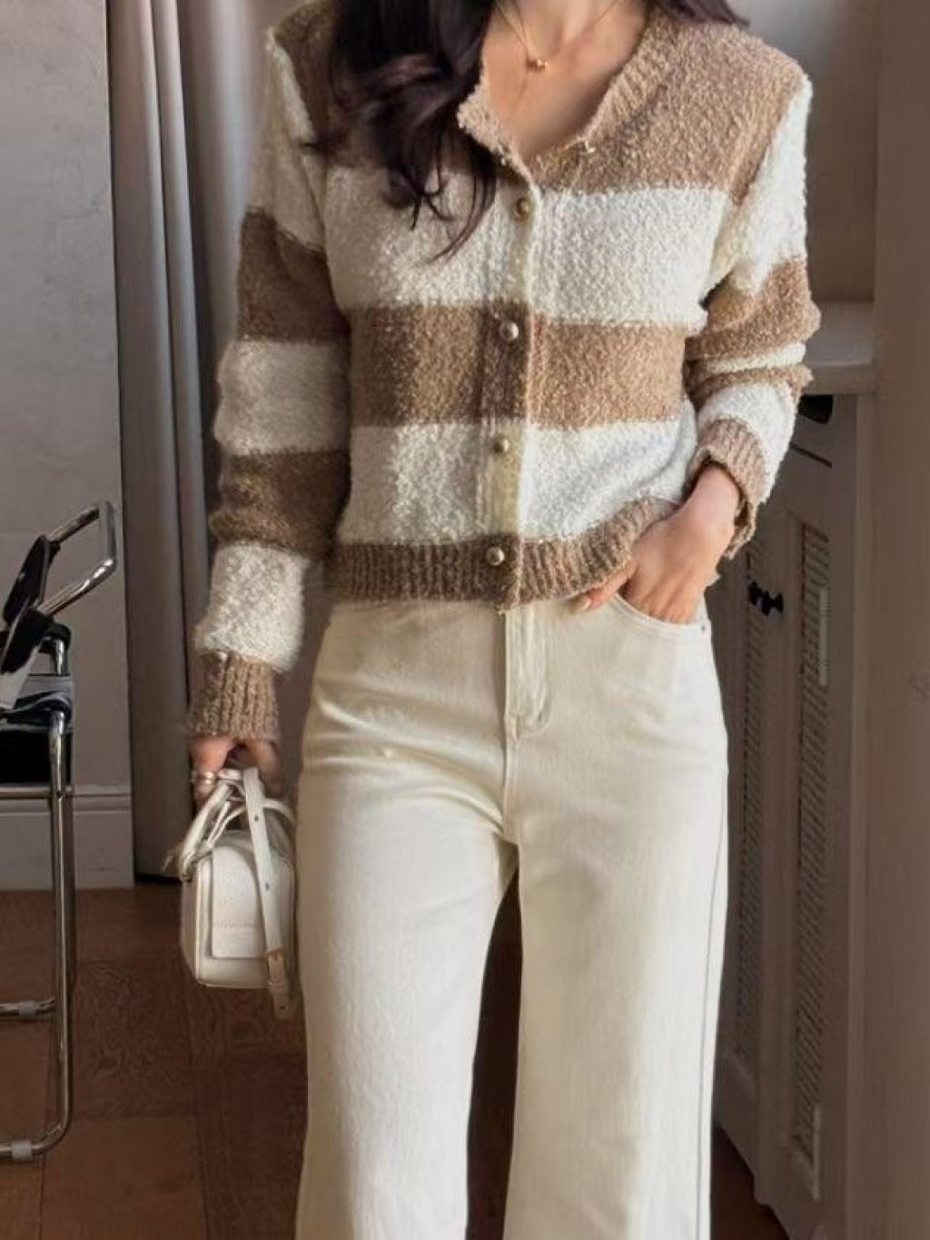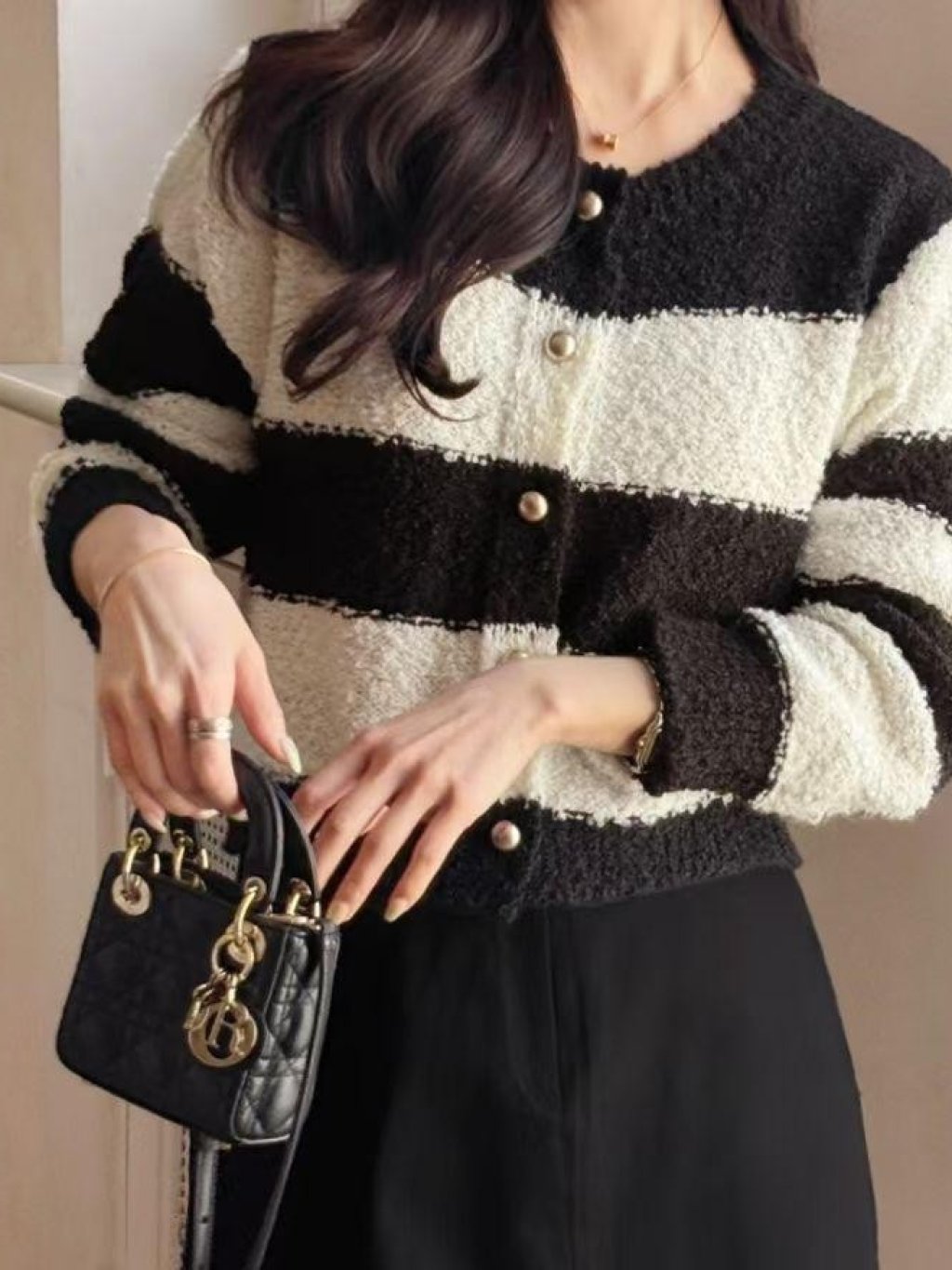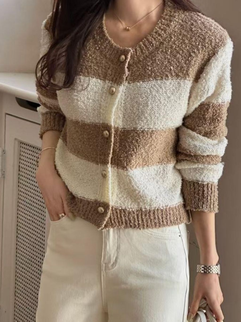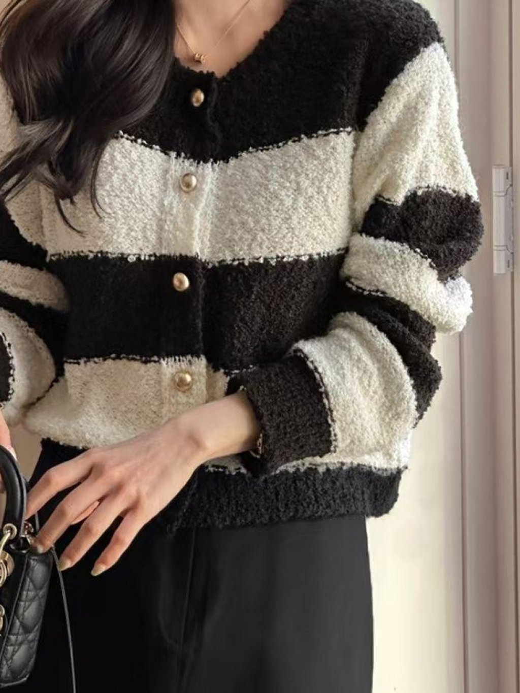 HP19 金扣條紋針織衫