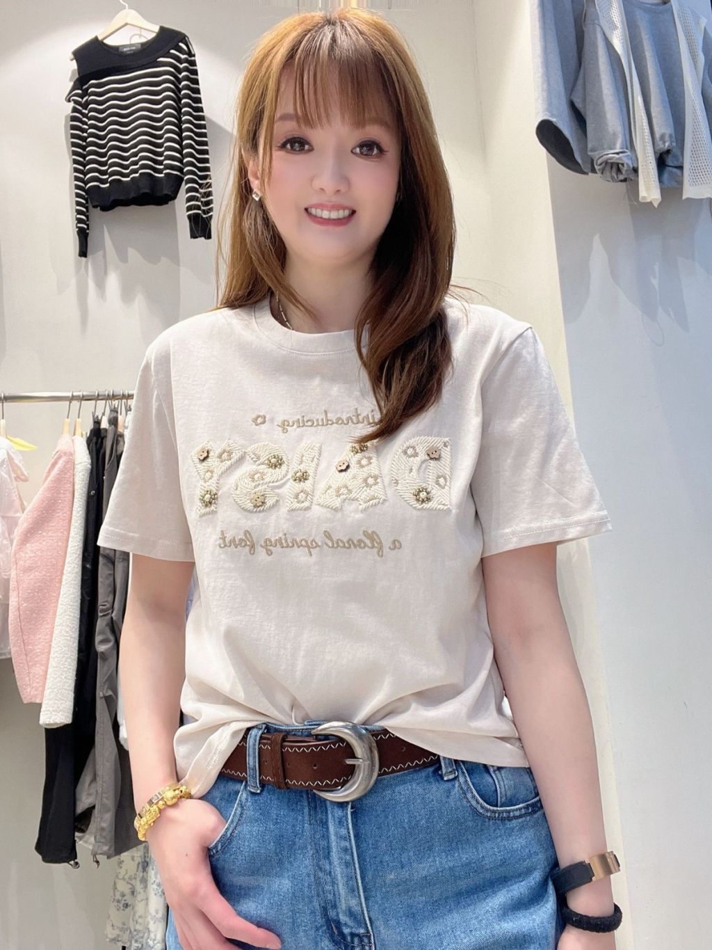HP39 立體刺繡字母棉質短 T