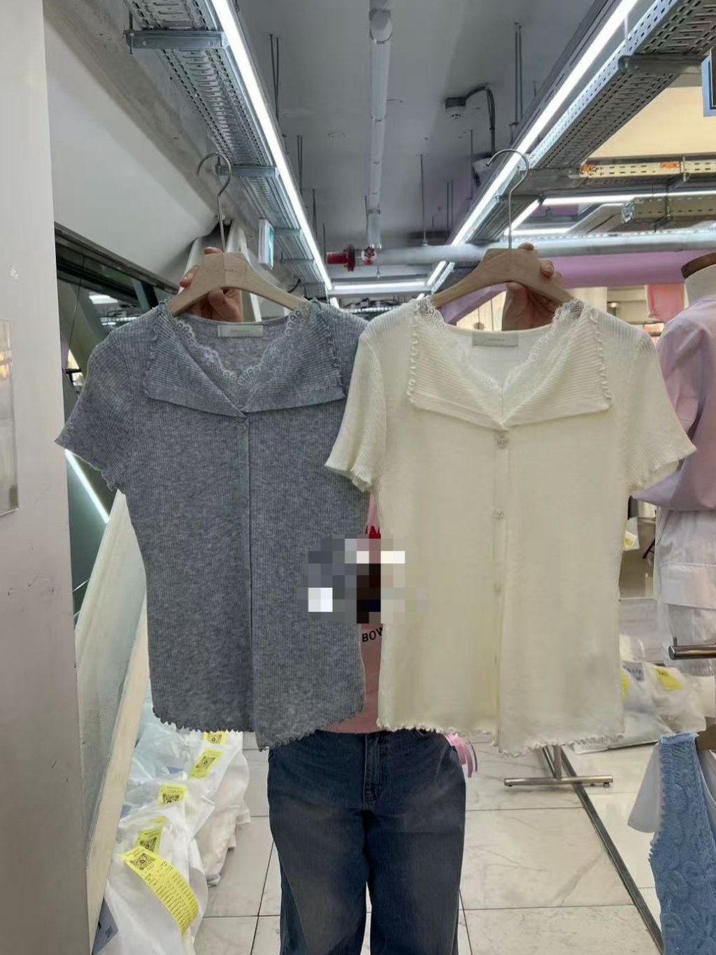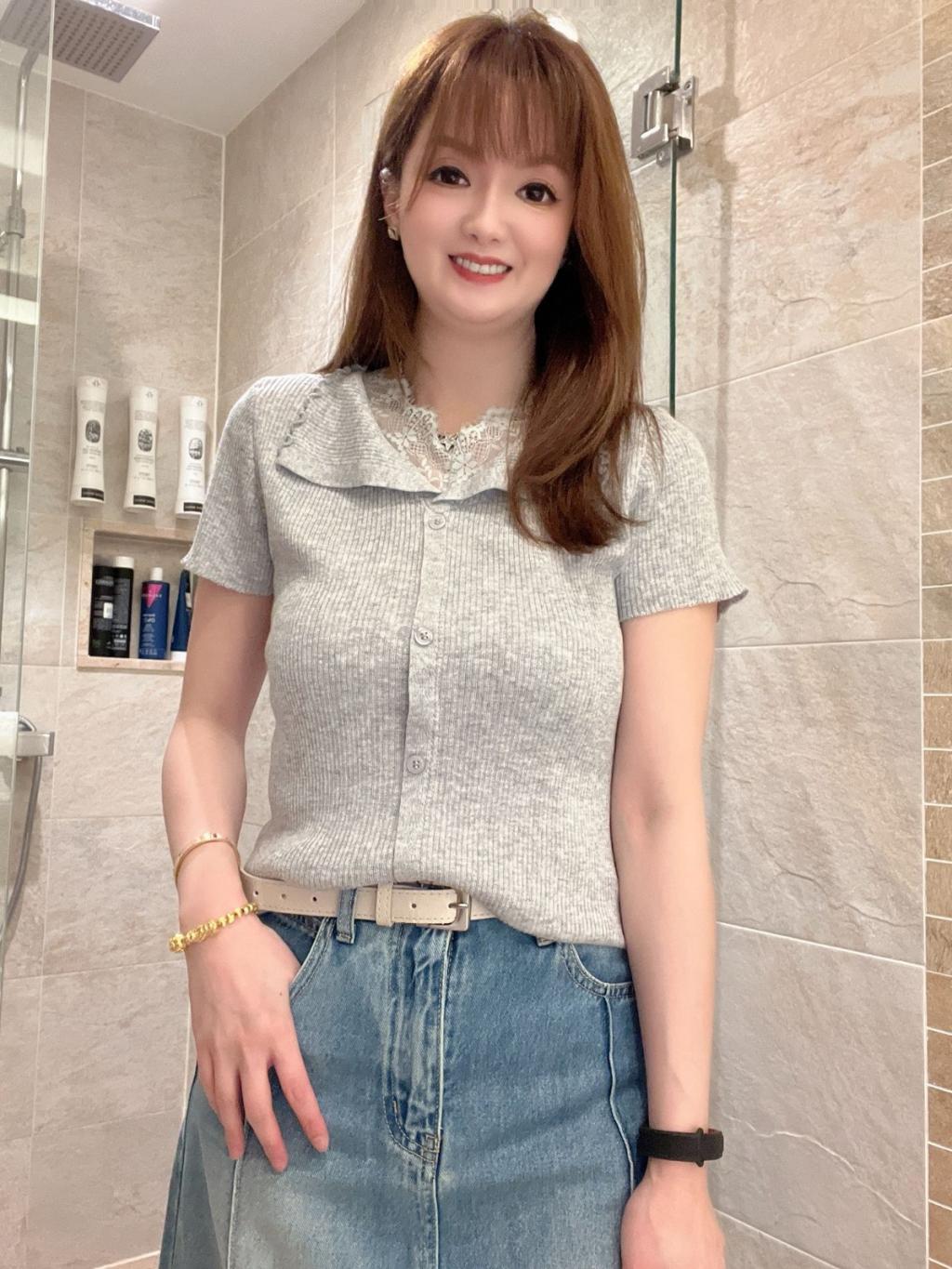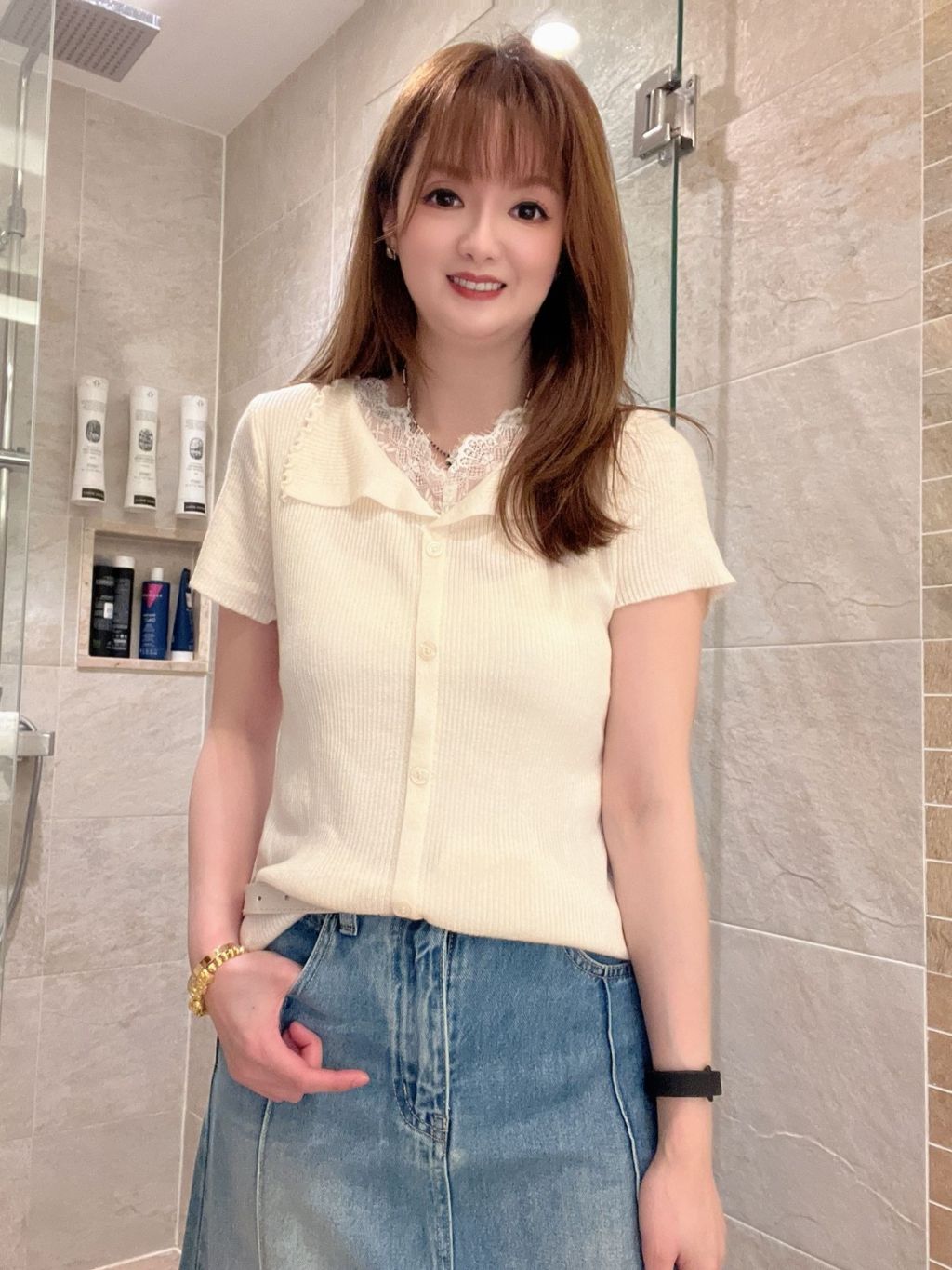 LA5 大翻領蕾絲滾邊針織開襟衫