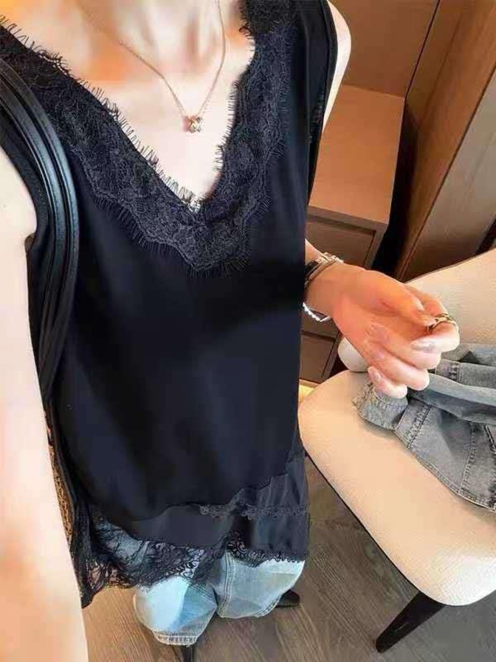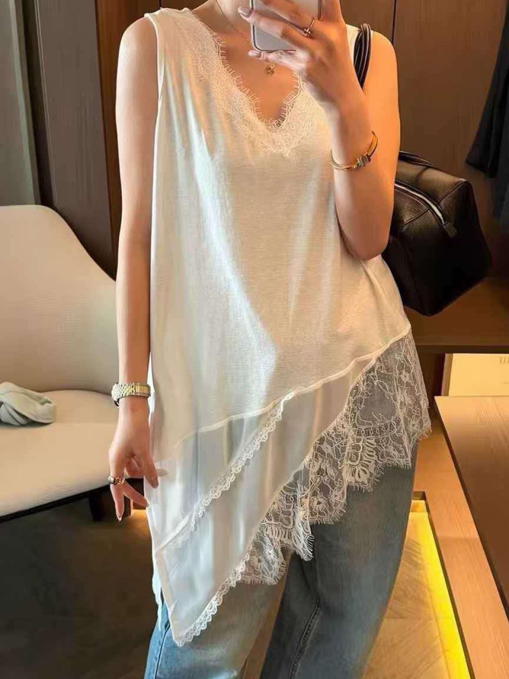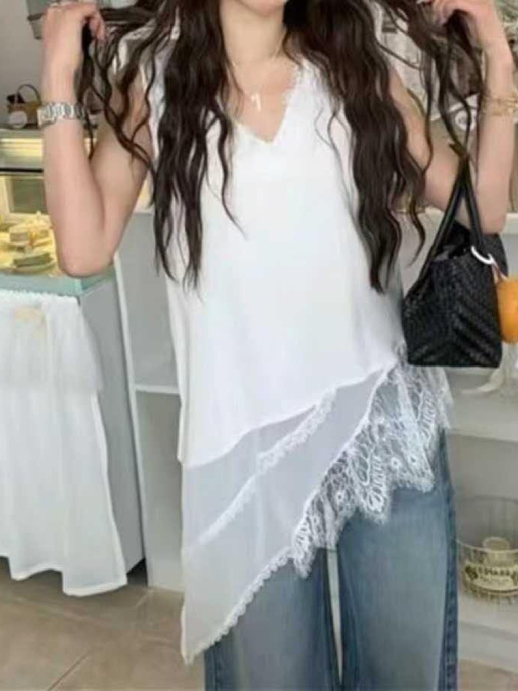 主頁 HP48 不規則蕾絲拼接雪紡背心