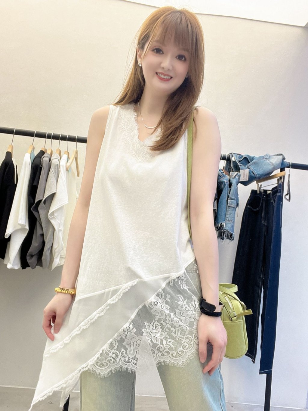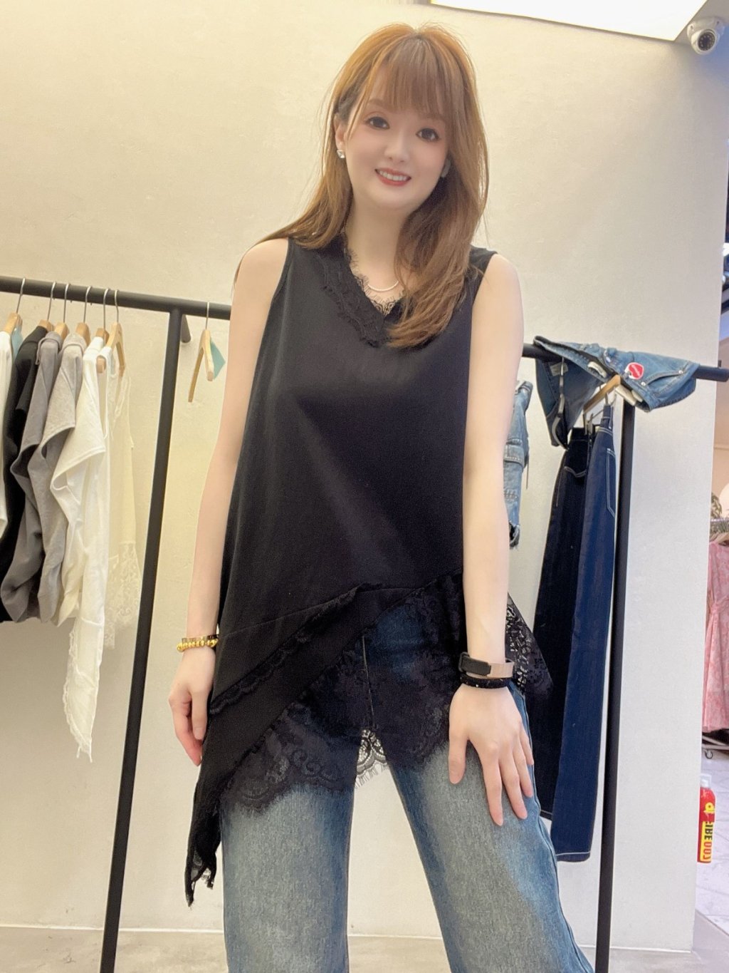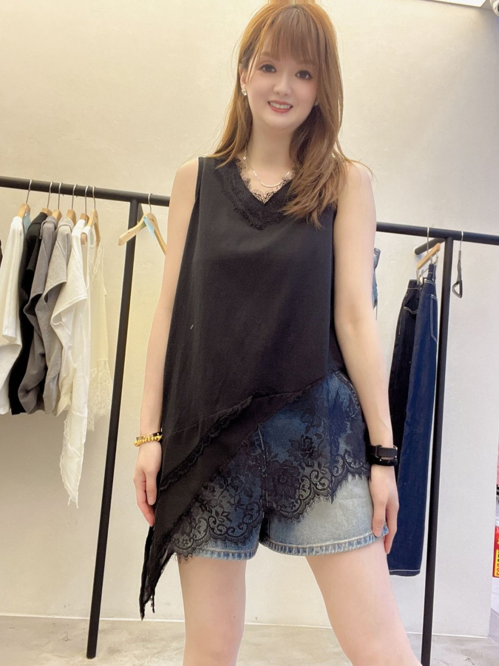 主頁 HP48 不規則蕾絲拼接雪紡背心