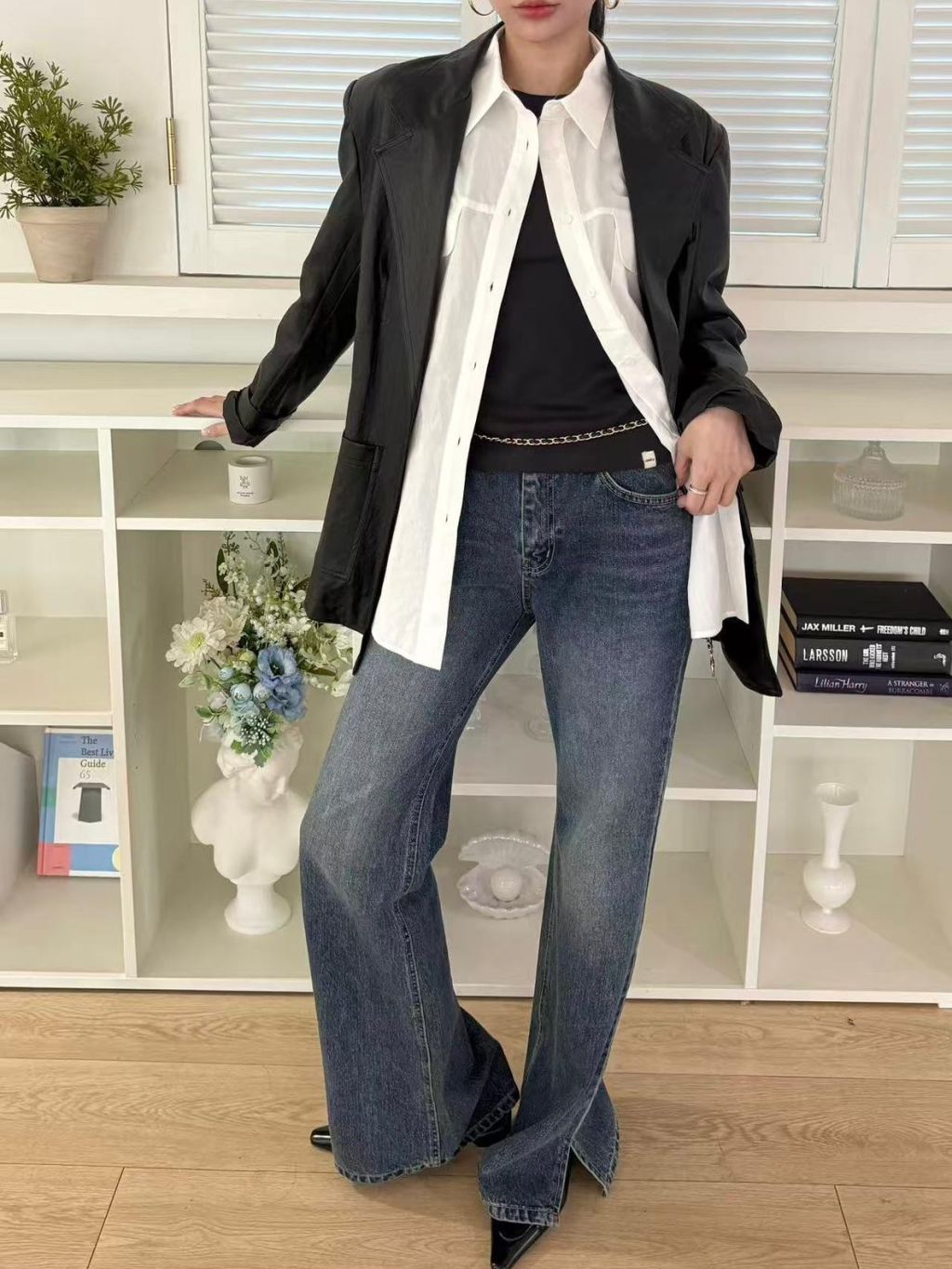 LU4 復古水洗微喇叭牛仔長褲