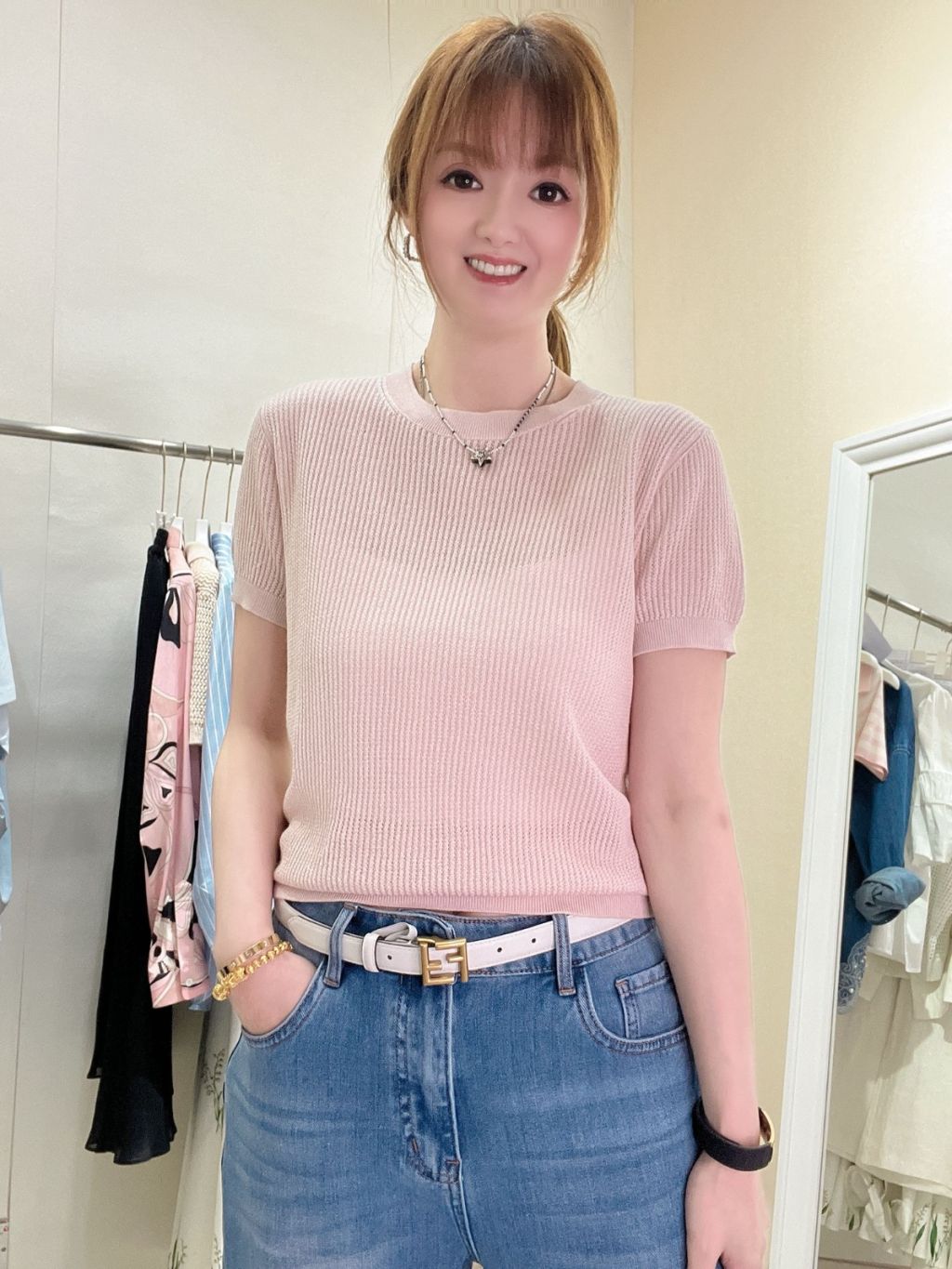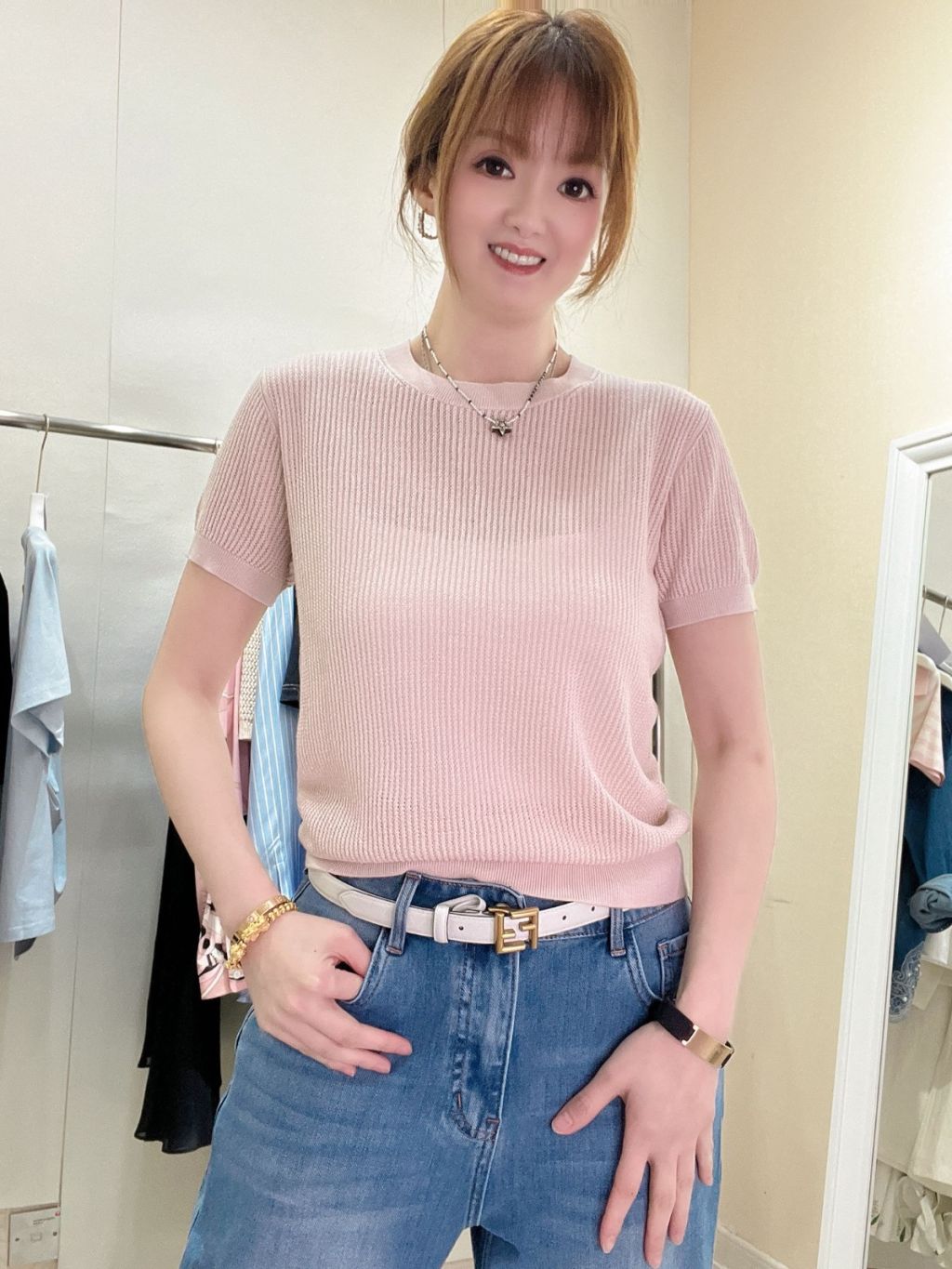 CM45 淺粉紅暗紋圓領上衣