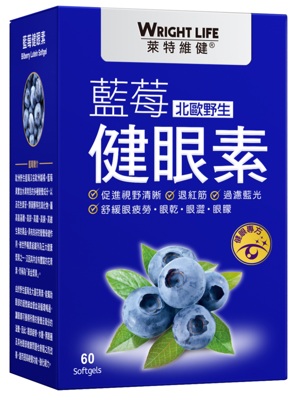 北歐野生藍莓精華,藍莓提取物,天然小米草提取物,葉黃素精華,β- 胡蘿蔔素,維生素 E、大豆卵磷脂,葡萄籽油