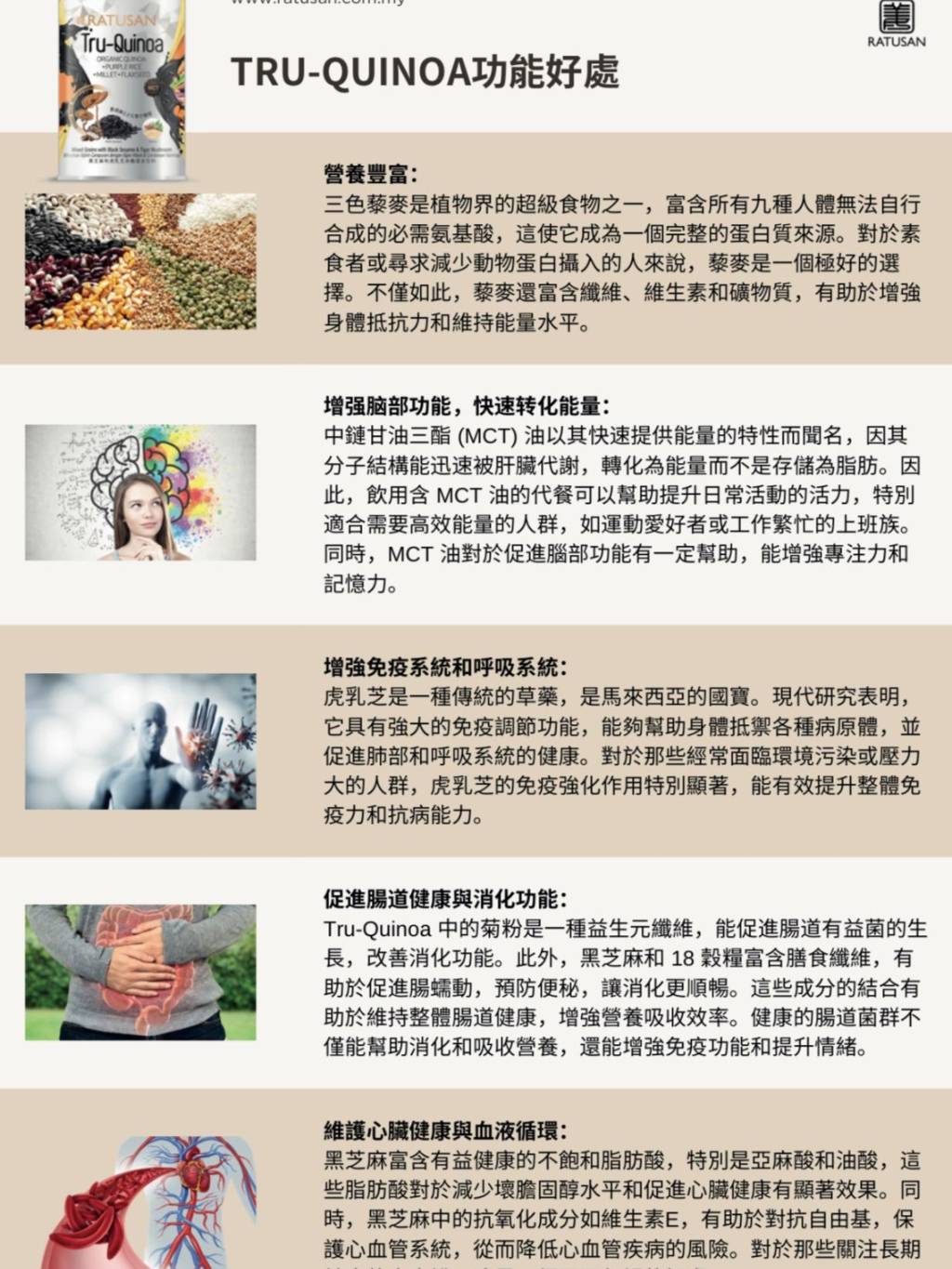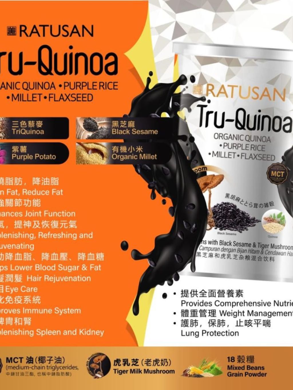 3)TRU QUINOA黑芝麻和虎乳芝雜糧混合飲料 450g