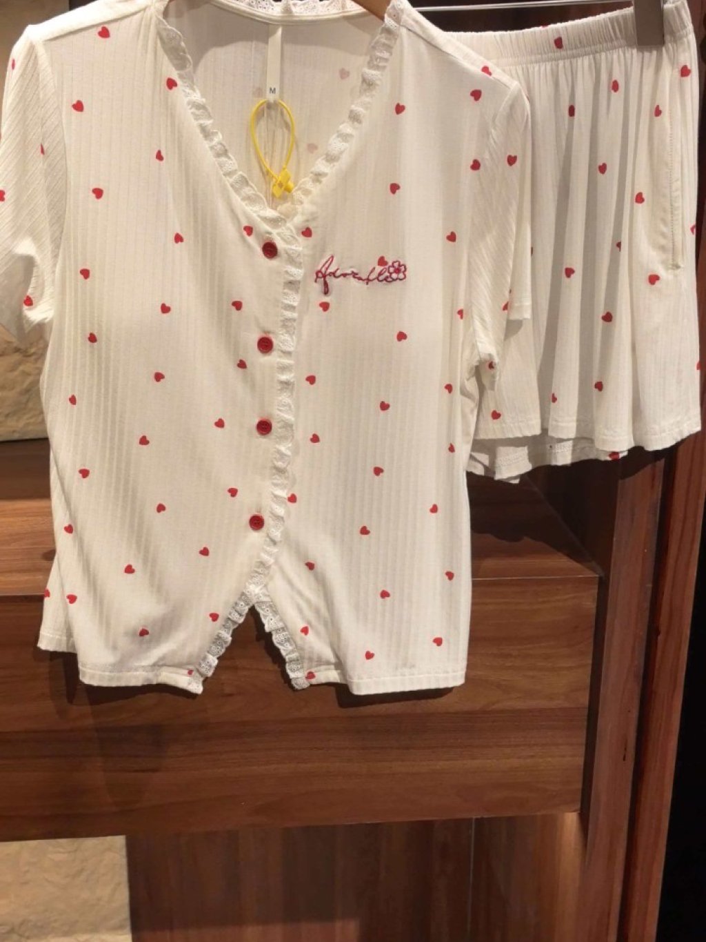 PL34 帶胸墊滿身愛心白色 短袖短褲